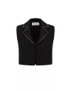 Cropped Martina confeccionado em alfaiataria tecido Monet encorpado maleável com ótima elasticidade, o shape tem decote e v com recortes sinuoso, cava alta e posterior (Costa) com fechamento por botão único, ziper lateral, conta ainda com recortes frontais que vão até a barra com leve detalhe de abertura em corte arrendodado, aquele Efflortess & Chic que não pode faltar no seu cabide, para uma produção perfeita combine com o shorts Martina